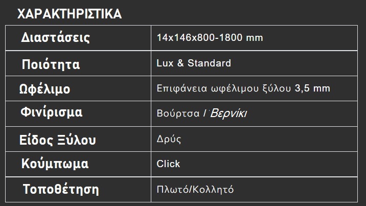 Διαστάσεις | Πλάτος 146 mm | Πάχος 14 mm | Μήκος 800-1805 mm |